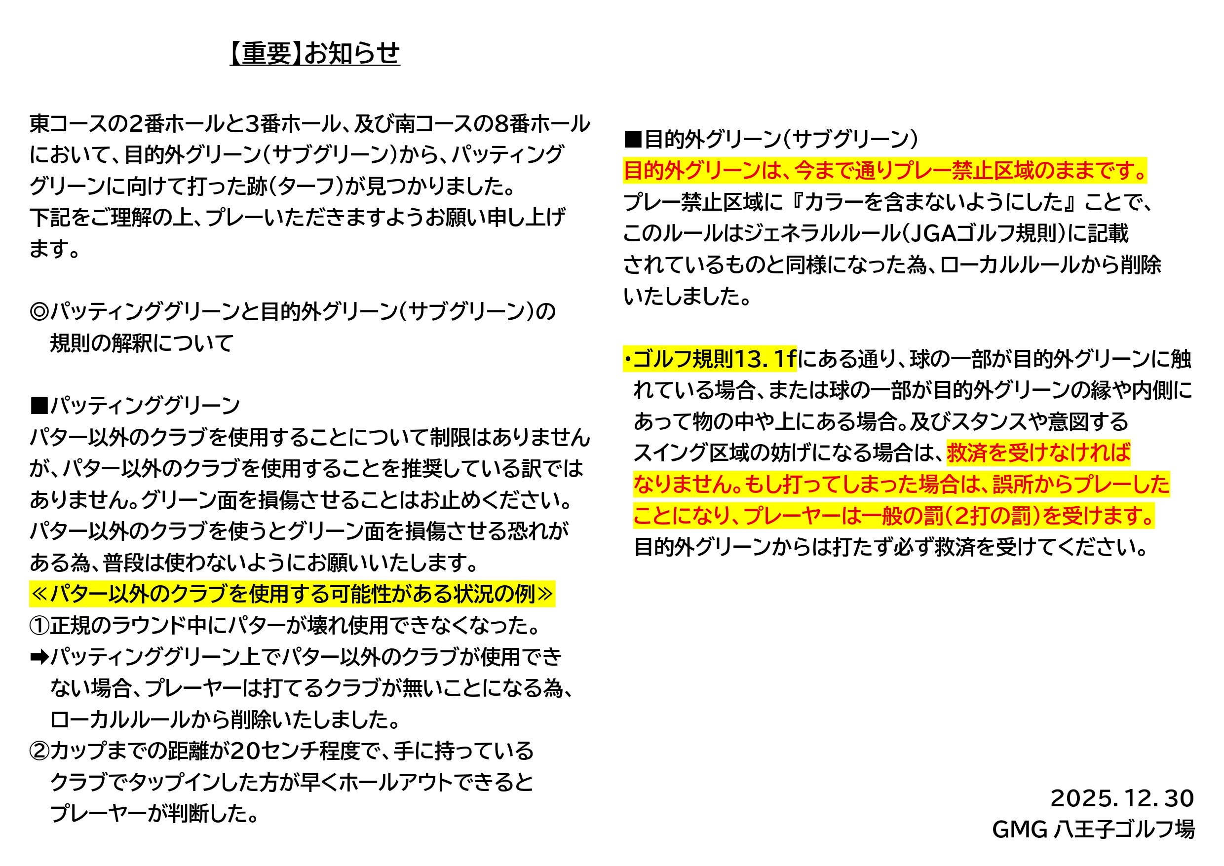 ご理解の上、プレーをお願いいたします。